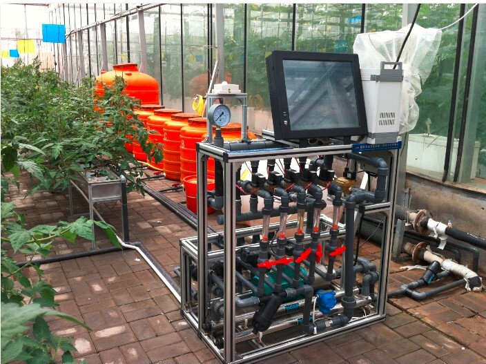 水肥药一体化装备含有3-5个注肥通道,每通道均安装流量计,可实时观测并调节吸肥速率;监测EC、PH,调控肥液的浓度及酸碱度。可实现营养液自动检测、配比、灌溉,并记录灌溉量。
